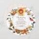 Ce design de vacances présente un cadre circulaire élégant de fleurs d'aquarelle d'automne rustiques. Modifier le texte à l'intérieur du cadre pour personnaliser pour votre dîner de Thanksgiving Invitations Sur les revers est un motif beige et blanc rayé et doux #thanksgiving #friendly #holiday #fête #rustique #floral #watercolor #automne #fleurs #tournesols #baies #rouge #orange #brun #vert #feuillage #botanical #élégant #style #moderne #moderne #tendance #moderne tendance #design #designer #personalisé #personalisé #custom #motif
