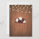 Parfaites pour les mariages boho de la campagne, ces invitations florales rustiques présentent un bouquet de fleurs bordeaux et rousses sur un bocal de mason avec l'important texte à l'intérieur. Des lampes à cordes décorent le dessus du design, avec un arrière - plan en bois rustique.
