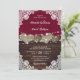 Invitation Russe Bourgogne Mariage de dentelle Burlap