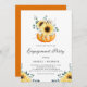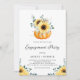 Invitation à la fête de fiançailles pour thème citrouille botanique. Il dispose d'un citrouille d'aquarelle avec des tournesols jaunes, du coton et des feuilles d'eucalyptus. Personnalisez en ajoutant les noms, la date, l'heure, le lieu et d'autres détails de l'événement. Cette invitation au tournesol rustique est parfaite pour les fêtes d'automne ou d'automne.