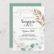 Cette invitation rustique à la soirée surprise de calligraphie d'or eucalyptus est parfaite pour un simple anniversaire, la retraite ou toute fête surprise. Cette conception artistique présente des feuilles d'or dessinées à la main et des feuilles d'aquarelle vert d'eucalyptus, joliment disposées dans un cadre géométrique élégant.