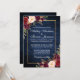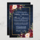 Invitation Russe Mariage or Bourgogne Floral Bleu Bois