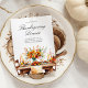 Un rassemblement chaleureux et rustique de Thanksgiving, où tradition, gratitude et convivialité s'animent autour de la table à manger. La scène est centrée sur une table joliment dressée, ornée de bougies dorées, de fleurs d'automne vibrantes, et d'un festin avec dinde rôtie et fruits de saison, symboles de l'abondance et de la récolte. La combinaison de tons de bois terreux et de feuillage lumineux et enflammé saisit l'essence de la chute, évoquant des sentiments de confort, d'hospitalité et de célébration. Ce qui le rend spécial, c'est comment il va au-delà d'un simple cadre de repas, il incarne l'esprit de Thanksgiving lui-même, un rappel de la communauté, de la gratitude, et des moments chers partagés avec des êtres chers.