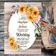 Invitation vos amis et proches à votre mariage avec cette invitation rustique avec des tournesols vibrants, des roses roses délicates et des sprays de branches d'eucalyptus encadrant le texte pour aider à partager votre joie lors de votre journée spéciale.