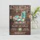 Invitation d'anniversaire de la cow-girl occidentale modifiable modèle vert turquoise. Célébrez le traditionnel avènement de l'âge avec notre Rustic Western Birthday Party Invitation, parfait pour une célébration sur le thème de la campagne. Cette invitation mélange la chaleur d'un arrière - plan rustique en bois avec le charme des accents floraux et des lampes à cordes, qui culminent dans un design aussi unique que beau.