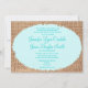 Ce faire-part de mariage rustique est parfait pour tous les mariages occidentaux du pays. Il présente un arrière - plan rustique imprimé en burlap des deux côtés de l'invitation. L'écriture d'invitation est imprimée sur un ovale bleu en lambeaux avec des bords déchirés. Le burlap n'est qu'un dessin imprimé. Il ne s'agit pas d'un tissu de robinet. Ce faire-part mariage est parfait pour le couple qui a un mariage de l'ouest ou de la grange et qui veut intégrer le burlap dans son thème de couleur mariage.