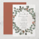 Cette invitation de brunch pour une douche de mariage présente un design simple et doux avec une couronne d'eucalyptus verte et rouille à l'aquarelle sur un fond crème en détresse vintage. Le dos est d'une couleur terre cuite rouille simple. Créé par Simply Farmhouse Press.