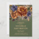 Elégante et élégante invitation à la fête du 80e anniversaire pour les femmes avec rouille/brûlé orange et bleu marine fleurs et verdure sur un arrière - plan vert chasseur. Contactez-moi pour obtenir de l'aide sur la personnalisation ou pour demander l'appariement ou la coordination des produits Zazzle.