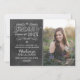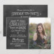 Annoncez votre diplômé en style avec ce faire-part de graduation photo de style lunatique qui présente un look arrière - plan texturé en tableau noir avec du texte manuscrit en craie blanche, des rouleaux et des doodles à côté d'un espace photo portrait. Le dos de ces cartes stylisées peut être customisé comme invitation à une fête de remise de diplômes pour célébrer l'occasion.