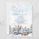 Invitation Rustic Blue Truck Bear Winter Onederland Birthday