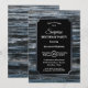 Une invitation à l'anniversaire surprenante en bois de grange bleu bordée d'argent rustique avec le texte blanc surligné sur un arrière - plan noir.