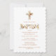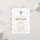 Rustic Boho Chic Floral Cross Baptism Invitation with Soft Earthy Botanical Accents and Delicate Wildflower Illustration on Elegant Card.