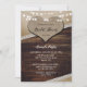 Mariage campagnard rustique invitation à la douche nuptiale avec un coeur de burlap contre un bois rustique orné de burlap, dentelle et lumières à cordes.