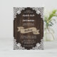 Ce faire-part de mariage rustique romantique avec un ruban de burlap sur un bois rustique et arrière - plan en dentelle est parfait pour inviter vos invités à votre pays rustique ou à votre mariage de grange inspiré par burlap et dentelle. Personnalisez facilement cette carte de mariage en bois rustique avec vos détails de mariage.