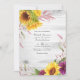 Tournesols et dahlias boho rustiques dans les teintes de prune bordeaux et de soleil.Idéal pour tout thème ou mariage de jardin. Le code QR au verso dirige vers votre site mariage où les gens peuvent en savoir plus et rsvp.