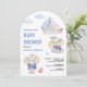 Amaze your guests with this elegant nautical theme baby shower invite featuring a cute sail boat and adorable little elephant in sailor's costume. Simply add your event details on this easy-to-use template to make it a one-of-a-kind invitation.