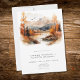 Escape to a serene autumn mountain retreat with your wedding invitation. This exquisite design showcases a breathtaking watercolor painting of a majestic mountain, surrounded by trees adorned with fall foliage, their beauty flanking the serene waters. The muted natural tones of tan, brown, rust, gold and grays create a timeless and sophisticated atmosphere, reminiscent of a peaceful alpine escape at the pinnacle of the fall season. The clean white background and modern font text add a touch of contemporary elegance, balancing the natural beauty of the scene. Created by Simply Farmhouse Press.