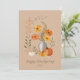 This design pays tribute to that heartfelt atmosphere with a rustic folk art composition. A handcrafted vase overflows with autumn blooms in golden and reddish tones, while small pumpkins rest gracefully at its base, symbolizing the abundance of the season. The warm colors and painterly texture evoke a comforting sense of home, making these invitations perfect for expressing gratitude, togetherness, and appreciation for detail.