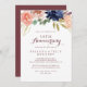 Cette invitation d'anniversaire de mariage de 50 ans avec calligraphie dorée rustique est parfaite pour un anniversaire de mariage moderne. Le design présente des fleurs aquarelles dessinées à la main violet, marine, rose, bordeaux, marine, des feuilles vertes et dorées.