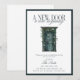 Welcome friends and family to your new home with this charming housewarming invitation. It features a beautiful, rustic green door illustration adorned with delicate white roses and lush greenery, symbolizing "a new door, a new beginning." The elegant typography sets a sophisticated tone for your moving announcement or open house party. Easily customizable with your party details, this unique invitation is perfect for anyone who appreciates vintage style and a warm welcome home.