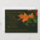 Une invitation étonnante avec une feuille d'automne brûlée-orange contre un arrière - plan vert foncé. Parfait pour toute célébration d'automne.La carte est facile à customiser avec votre libellé, police, couleur de police et choix de six types de papier.