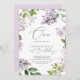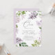 Cette invitation rustique au premier anniversaire de lilas est parfaite pour une fête d'anniversaire de printemps ou d'été. Le design floral romantique et élégant présente des fleurs sauvages lilas violets d'aquarelle aux allures de jardin boho.