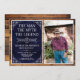 C'Est L'Homme Le Mythe La LÉGENDE ! Sa vie a été une aventure extraordinaire et il est temps de célébrer son héritage et lui. Cette grange naturelle papier bleu marine texturé avec type blanc et blanc rayé coin 90ème anniversaire invitation avec l'invité de la photo d'honneur est parfait pour inviter des amis et la famille à se joindre à vous pour honorer et célébrer cet anniversaire fabuleux! Pour voir vos invitations uniques, cliquez sur "Personnalisez ce Modèle" et entrez vos informations et téléchargez une photo préférée. C'est super facile !