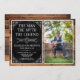 C'Est L'Homme Le Mythe La LÉGENDE ! Sa vie a été une aventure extraordinaire et il est temps de célébrer son héritage et lui. Cette grange naturelle papier noir texturé avec type blanc et blanc rayé coin surprise 70e anniversaire invitation avec l'invité de la photo d'honneur est parfait pour inviter des amis et la famille à se joindre à vous pour honorer et célébrer cet anniversaire fabuleux! Pour voir vos invitations uniques, cliquez sur "Personnalisez ce Modèle" et entrez vos informations et téléchargez une photo préférée. C'est super facile !