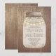 L'invitation à dîner de la répétition rustique de pays comprend un pot en maçon vintage avec dentelle et une chaîne de lumières à l'ancienne. Romantique, invitation en bois en détresse pour votre dîner de répétition de grange rustique.