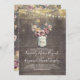 Vintage répétition rustique invitation à dîner comprend mauve et doré bocal de mason floral, chaîne de lumières, et vieux arrière - plan de grange bois.