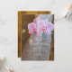 Invitez vos invités à poursuivre la fête le matin après la cérémonie de mariage avec la charmante invitation Rustic Orchid Elegance Country Barn Post Mariage Brunch. Cette invitation de déjeuner ou de brunch après le mariage sur le thème ranch personnalisé, décontractée mais élégante, présente une photographie florale pittoresque de fleurs d'orchidées phalaenopsis roses sur la tige avec un fond en bois de grange marron.