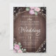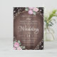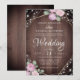 Invitation Rustic Pink Floral Wood & String Lights Wedding