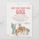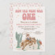 Rustic Pink Retro Comment l'Ouest a été un 1er anniversaire Invitation mignonne rétro comment l'Ouest a été une invitation de premier anniversaire pour petite fille avec une cowgirl, casquette cowgirl, paysage du désert occidental avec des cactus et un texte de style rétro. Cette invitation de premier anniversaire à thème de cowgirl pour fille est idéale pour une fête de premier anniversaire à thème occidental.