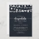 Cette corde rustique illumine l'invitation à la douche nuptiale espagnole est parfait pour un wedding shower simple. Le design présente de belles lumières à cordes peintes à la main dans un arrière - plan bleu foncé.