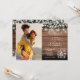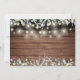 Un faire-part de mariage élégant avec votre photo spéciale et de jolis feuilles de sauge et lilas, des lampes à cordes, des jarres de maçon et vos détails mariages ensemble dans un texte élégant sur un arrière - plan de bois rustique. Conçu par Thisisnotme©