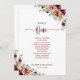 Cette table fleurie d'été n° 1 rustique est parfaite pour un mariage simple. Le design est composé de fleurs d'aquarelle bordeaux, roses et rousses avec des feuilles verts dans un arrière - plan verni brun. La carte imprime recto verso (recto verso)