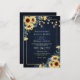 Invitation Rustic Sunflower Navy Blue Wood QR Code Wedding