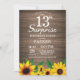 Invitation Rustic Sunflower Surprise 13e anniversaire Invitat