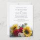Invite your friends and loved ones to celebrate your union with this rustic sunflower and red rose floral wedding invitation. The customizable text allows you to effortlessly add the bride and groom’s names, wedding date, and the necessary details of your celebration. A variety of paper types and corner styles are available for your unique invitations, along with the option to download if you prefer a digital format.