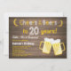 Rustic Surprise Cheers et Bières Invitation 20e Anniversaire. Anniversaire adulte. Anniversaire de la bière pour hommes. Tableau noir et blanc Arrière - plan. Pour plus de personnalisation, cliquez sur le bouton "Customiser" et utilisez notre outil de conception pour modifier ce modèle.
