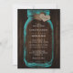 Invitation Rustic Teal Mason Jar Wood Hearts Monogram Wedding