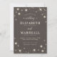 Ce Faire-part de mariage rustique Twinkle Fairy Wood présente des lumières scintillantes sur un arrière - plan en bois de grange en détresse. Cette invitation inspirée de la ferme est parfaite pour un mariage de grange ou mariage extérieur.