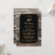 Un dîner d'invitation en or rustique bordé de bois 40ème anniversaire avec texte or sur un arrière - plan noir.