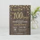 Invitation du 100e anniversaire avec Arrière - plan diamant en bois rustique et Parties scintillant d'or. Country Vintage Retro. Confetti d'or. Anniversaire adulte. Hommes ou Femmes Anniversaire. Pour plus de personnalisation, cliquez sur le bouton "Customiser" et utilisez notre outil de conception pour modifier ce modèle.