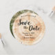 Rustic Wedding Save the Date Photo Wood Grain Invitation—a blend of natural charm and romantic elegance, perfectly tailored to your rustic wedding theme. This unique round card captures the essence of wood grain, emulating the rustic disc slices often seen at beautiful and romantic weddings. *Printed texture wood on paper