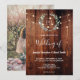 Rustic wood, watercolor leaves, string of lights monogrammed photo wedding invitation.