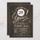 Invitation de fête d'anniversaire rustique 25 ans avec motif de bois brun foncé et police de caractères blanche. À 25 ans de bonheur ! Parfait pour une célébration élégante.