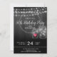 Une invitation rustique à la fête du 50ème anniversaire avec type blanc sur arrière - plan noir gris avec des lumières féeriques féeriques et des jarres de mason. L'âge est ajouté à la bocale de mason dans un coeur rose. Convient pour un 40ème, 16ème, 18ème, 21ème, 30ème, 40ème, 50ème, 60ème, 70ème, 80ème, 90ème, 100ème, ou tout âge. Pour plus de personnalisation, cliquez sur le bouton "Customiser" et utilisez l'outil de conception pour personnaliser ce modèle. Un style idéal pour un été, une fête d'anniversaire en plein air ou un barbecue.