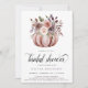 Rustic Fall Citrouille Fête des mariées rouille Invitation florale - Un magnifique citrouille d'aquarelle peint à la main rempli de magnifiques roses de tonalité terre et de verdure naturelle. Le retour de l'invitation est montré dans lavande, cependant, vous pouvez facilement changer l'arrière - plan à n'importe quelle couleur. Fête des mariées est dans une magnifique et élégante calligraphie script. L'invitation à la douche nuptiale fera partie d'une collection. Conçu par Beverly Bainbridge Magnolia & Thistle