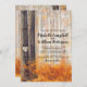 Campagne d'automne invitations de mariage avec une forêt de automne rustique avec des feuilles rouges, oranges et dorés, bouleaux argentés, un coeur sculpté de conte de fées sur l'arbre avec les initiales de la mariée et du marié, et un élégant éditable modèle mariage.